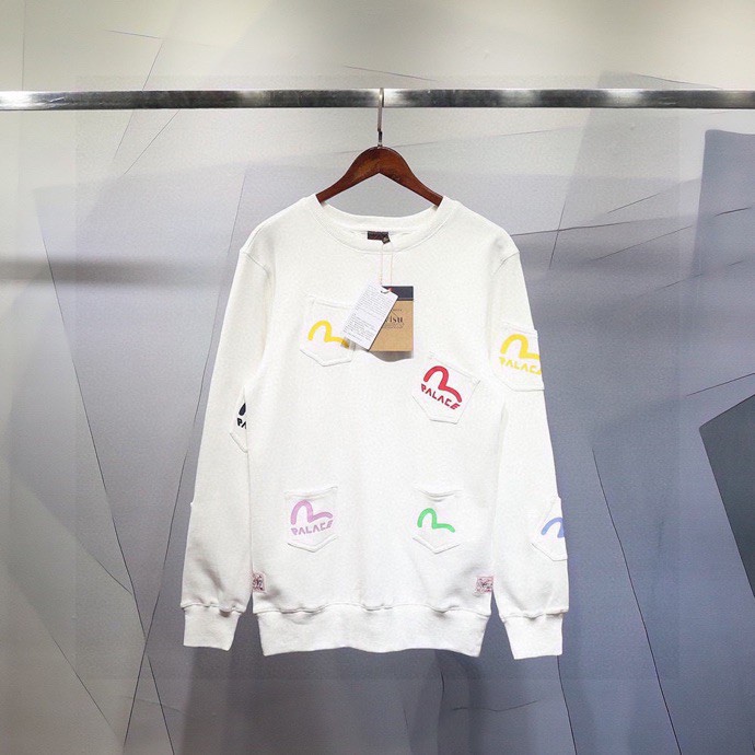 The joint series of Evisu and PALACE has brought a trend again , this sweater has multiple pockets, the classic EVISU little seagull is printed on the pockets, and part of the PALACE trademark is added to add a fashionable attitude
