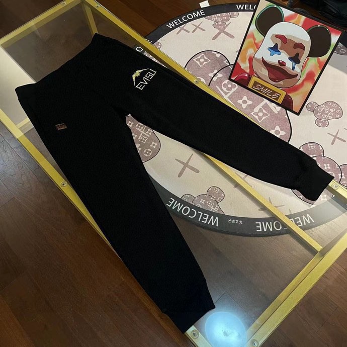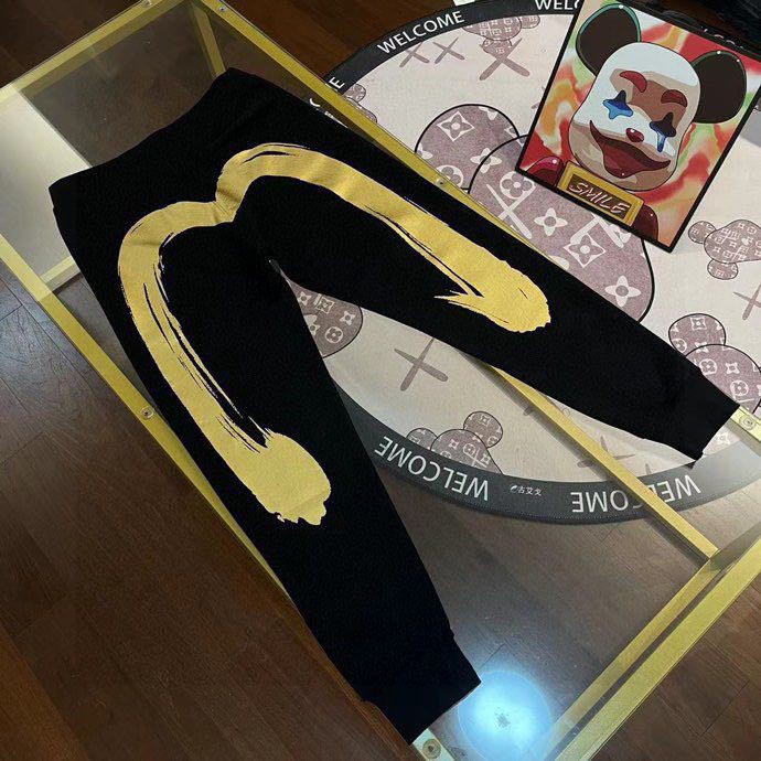 2024 Autumn and Winter New EV Fushen Men’s Pants Hand Brushed Bronzing Large M Print Letter Casual Sweatpants